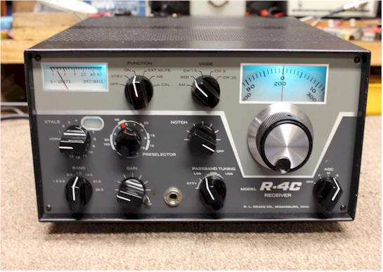 Drake R4C Receiver Fully Refurbished In Mint Condition $390.00 Here is the Drake R4C in near mint condition and comes with the noise blanker. This receiver has been thoroughly cleaned inside and out, the chassis was thoroughly cleaned. The front panel is original and in perfect condition. All the knobs, case and front panel were cleaned and restored to like new condition, the main tuning knob has a brand new chrome insert. The receiver has excellent sensitivity on all bands. The radio has been completely bench checked and serviced, completely aligned according to the manual, all switches and controls were cleaned and lubricated, all functions are in good working condition. The VFO was completely serviced, bearing grease replaced, lubricated and adjusted to provide a smooth light touch tuning, tuning dials cleaned. The blue filters in the VFO and S-Meter windows are brand new, and original blue color. Check out all the pictures, know what your buying before you make a purchase, the pictures tell it all. If you have any questions please e-mail those to: wb4hfn@twlakes.net |